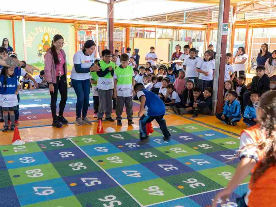 En la Escuela Arturo Pérez Canto D-133 de María Elena, las y los alumnos de primero a cuarto año básico, descubrieron que pueden aprender de forma lúdica, cuando se inauguraron en el patio donde juegan todos los días, las tres plataformas pedagógicas del programa Matemáticas en Movimiento, impulsado por Minera Antucoya junto a Fundación Momat.