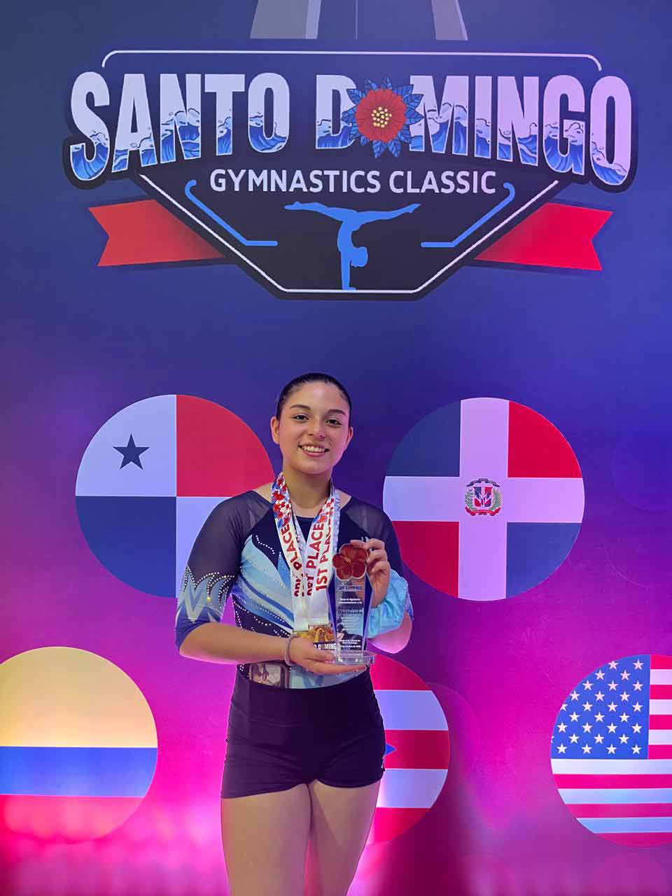 Se trata de Valentina Lema, estudiante del Colegio Mayor Tobalaba y habitante de San José de Maipo, quien este fin de semana representó al país en el Santo Domingo Gymnastics Classic, competencia que reunió deportistas de todo el continente. Fue su debut oficial fuera de Chile.