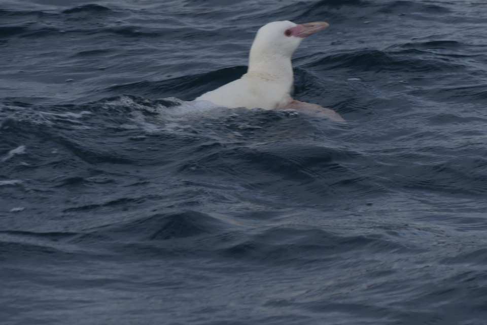 “Encontramos un ejemplar de pingüino albino. Era un individuo juvenil, bastante chiquito, con coloración bien blanca en las plumas y las partes blandas más rosadas, y además andaba solo en el agua, lo que no es común en esta especie”, explicó la Dra. Rodríguez.