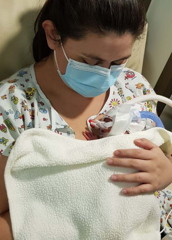 Meses en que su vida, recuerda, transcurrió en una sala en penumbra de la UCI neonatal, donde Claudia miraba por la ventana cómo continuaba la vida de la ciudadanía, observando gente con mascarillas ir y venir, mientras su vida estaba en pausa, dándole tregua a su hija para que siguiera creciendo fuera de su vientre.