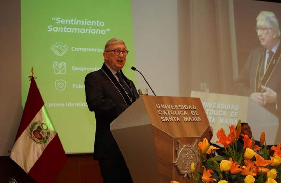 - Luis Cáceres Arce, rector de la UCSM, destacó en el homenajeado “al humanista que comprende que la universidad no es una estructura sino una misión”.