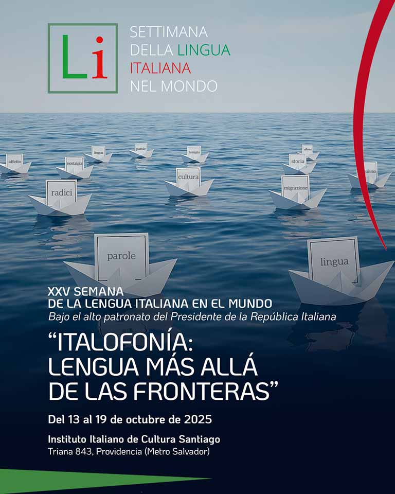 Este programa de iniciativas, en el marco de la Semana de la Lengua italiana en el mundo 2025, es promovido por el Ministerio de Relaciones Exteriores de Italia y organizado localmente por la Embajada de Italia en Chile junto al Instituto Italiano de Cultura de Santiago. Además, se realizarán actividades en Valparaíso y Viña del Mar.